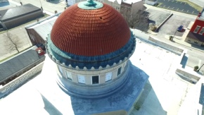 Aerial inspection of courthouse dome discovers missing tile not visible from ground level